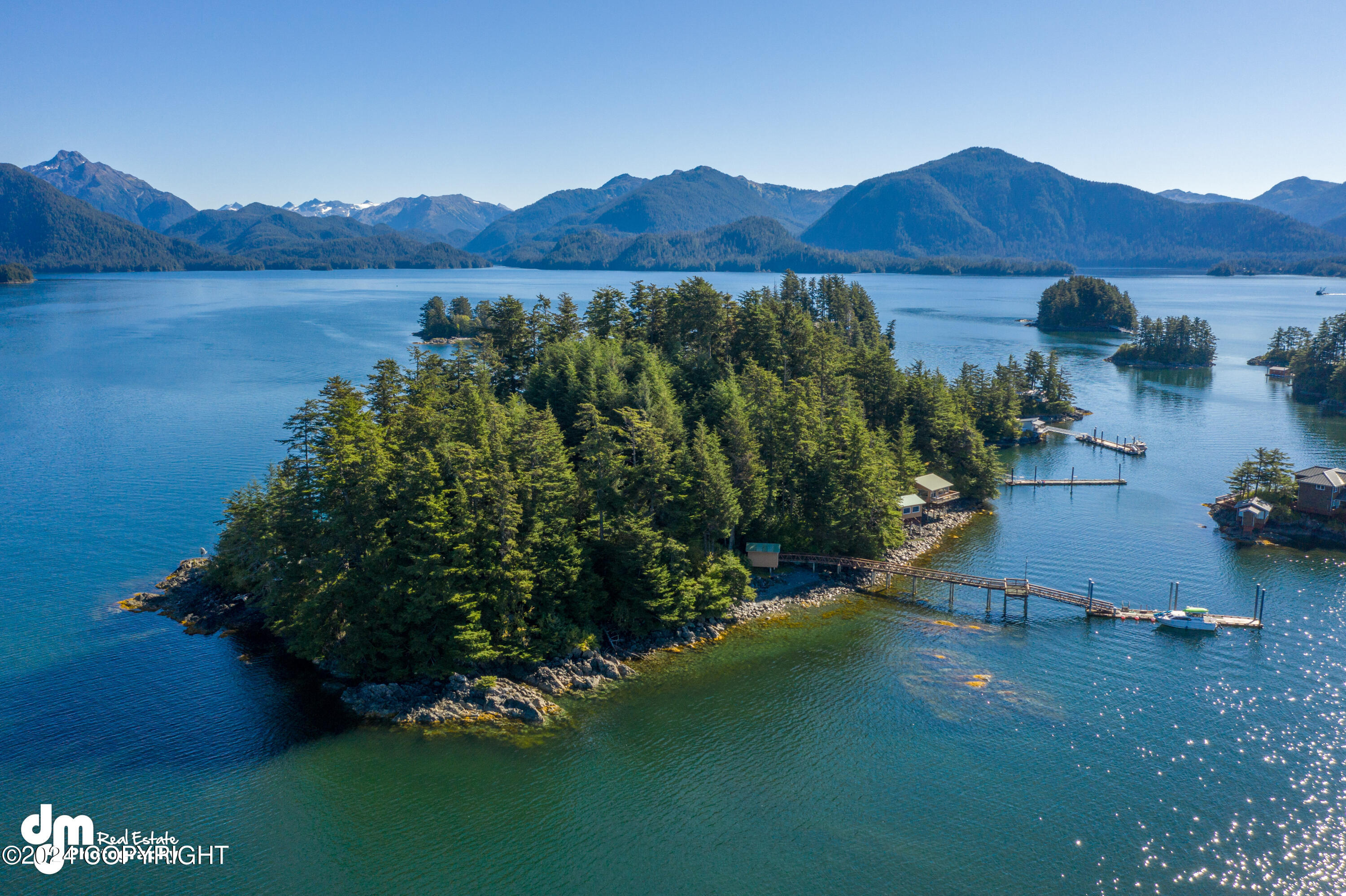 Escape to Quest Island, a 4.35-acre private retreat just a short boat ride from Sitka, Alaska. This exclusive property offers endless possibilities: a luxury Airbnb, fishing charter base, corporate retreat, or stunning venue for weddings and events. The island features two spacious homes, six guest cabins, a boat shop, fish processing shop, and two large docks for yachts and boats— perfect for those seeking quick access to world- class fishing, hiking, kayaking, and paddleboarding. The main lodge is ideal for hosting large gatherings, with a deck for outdoor entertaining, a separate kitchen, laundry, and a private owner's residence with a primary suite. The second home includes modern upgrades, vaulted ceilings, and a loft for additional guests. Accommodation includes four 2-bedroom guest cabins and two studios, each with breathtaking views and decks for whale watching. With city power, full plumbing, rainwater collection, septic, and two 80' docks with 100 AMP power, Quest Island is a turnkey retreat offering unparalleled adventure and serenity in Southeast Alaska.